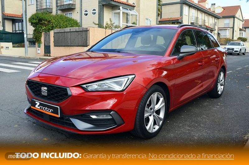 14.867 + 21% IVA = 17.990 € Todo incluido Seat León ST MHEV 1.5 eTSI DSG7 FR Go XL Impecable. Muy cuidado y equipado. Nacional 08-11-2021. Motor 1.5 eTSI gasolina microhíbrido de 150cv, con cambio automático DSG de 7 velocidades. Cómodo, fiable y muy bajo consumo. 162.000 km garantizados. Todo el mantenimiento al día, recién revisado. Muy completo y equipado. Equipado con: - Acabado deportivo FR - Paquete de equipamiento XL - Cambio automático DSG7 - Llantas de aluminio - Faros Full LED - Keyless, Apertura y arranque llave manos libres - Asientos deportivos FR con tapicería mixta - Volante deportifo FR con levas - Supensión magnética adaptativa - Control de chásis adaptativo DCC - Selector de modos de conducción - Marcador totalmente digital - Climatizador digital trizona - Pantalla multimedia táctil de alta resolución grande, 10" - Cargador de teléfono inalámbrico - Navegador con conexión online - Conectividad móvil integrada y WiFi - Conectividad Apple Car Play y Android Auto full screen inalámbrico - Manos libres Bluetooth - Reproducción inalámbrica audio Bluetooth - Sintonizador digital DAB - Iluminación ambiental LED totalmente configurable - Cámara trasera - Sensores de aparcamiento delanteros y traseros - Asistente de aparcamiento automático - Control de velocidad adaptativo con radar - Asistente de mantenimiento en carril con guiado - Asisitente de frenado automático y aviso de colisión - Asistente de aviso en ángulo muerto - Asistente de advertencia en apertura de puertas - Cámara reconocimiento señales de tráfico - Espejos fotocromáticos - Espejos plegables eléctricamente - Sensor de luz y lluvia - Dirección asistida variable deportiva - Asistente de llamada de emergencia eCall - 4 elevalunas eléctricos - Freno de mano eléctrico con AutoHold - Control de estabilidad ESP - Frenos ABS - Dirección asistida - Cierre centralizado - Airbags - ISOFIX - Pintura metalizada custom Rojo Desire -... Motor gasolina con sistema de hibridación ligera, muy bajo consumo y con distintivo ambiental ECO, sin restricciones. Vehículo muy cuidado, todo el mantenimiento al día y recién revisado. No es necesario invertir nada en él. ITV recién pasada. Kilometraje garantizado por escrito en todos nuestros vehículos. Etiqueta de emisiones "ECO" azul y verde.